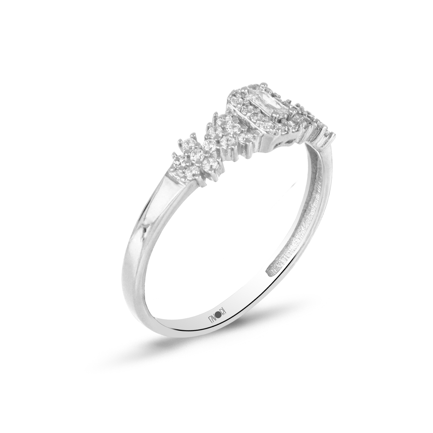 Bu 3.44 gr Altın Miniset Yüzüğü, 14 ayar beyaz altından üretilmiştir.