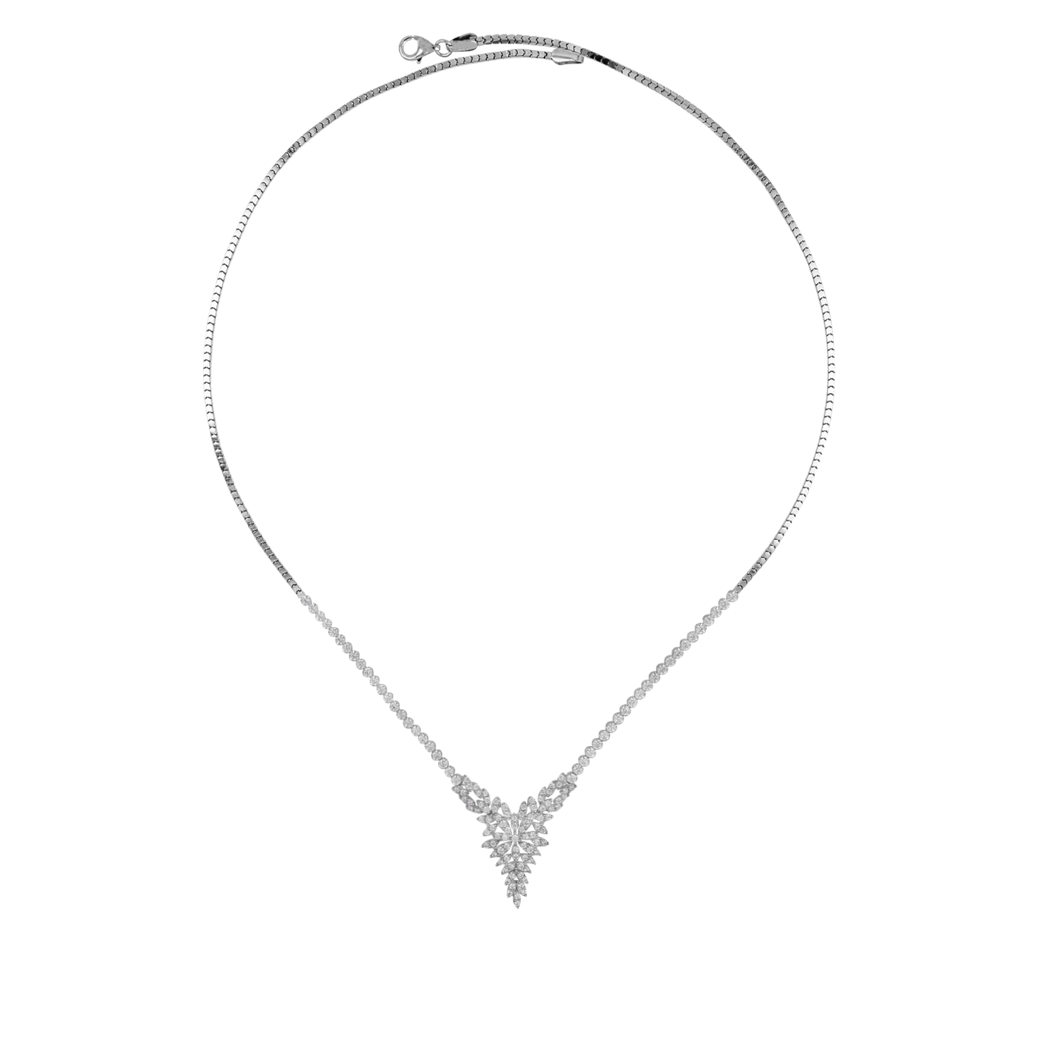 Bu 2.24 gr Altın Nişan Seti Kolyesi, 14 ayar beyaz altından üretilmiştir.